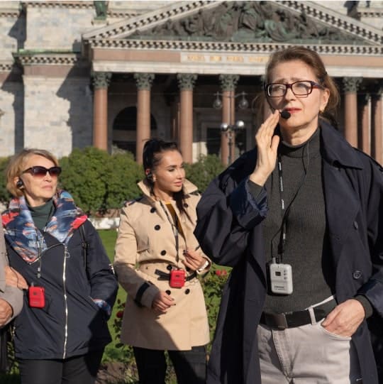 Да, одна из основных сфер применения радиогида — шумные производства. Благодаря использованию головного микрофона, голос экскурсовода без искажений поступает в наушники слушающих, при этом окружающий шум акустически маскируется голосом.